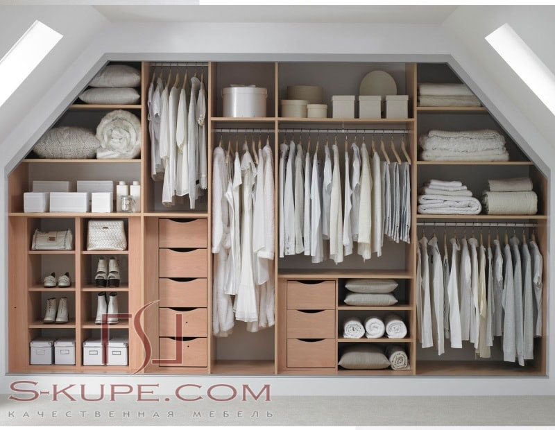 Это правильное использование, ста процентов полезной площади, наши специалисты помогут рационально разместить, полки для вещей и обуви, выдвижные ящики, штанги для хранения верхней одежды. Так же нужно предусмотреть место для хранения стремянки что бы можно было комфортно достать вещи которые будут храниться на верхних полках.