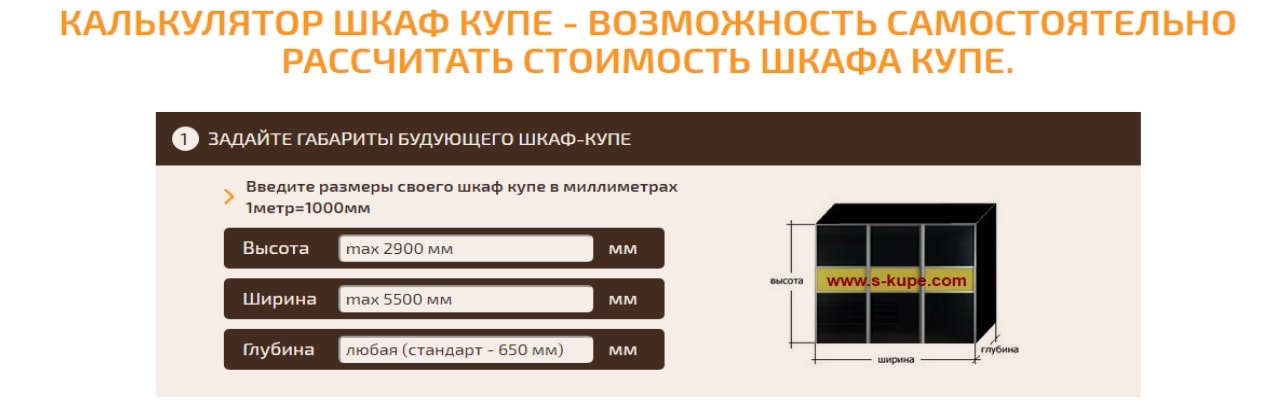 Новая услуга - калькулятор для расчета стоимость шкафа купе
